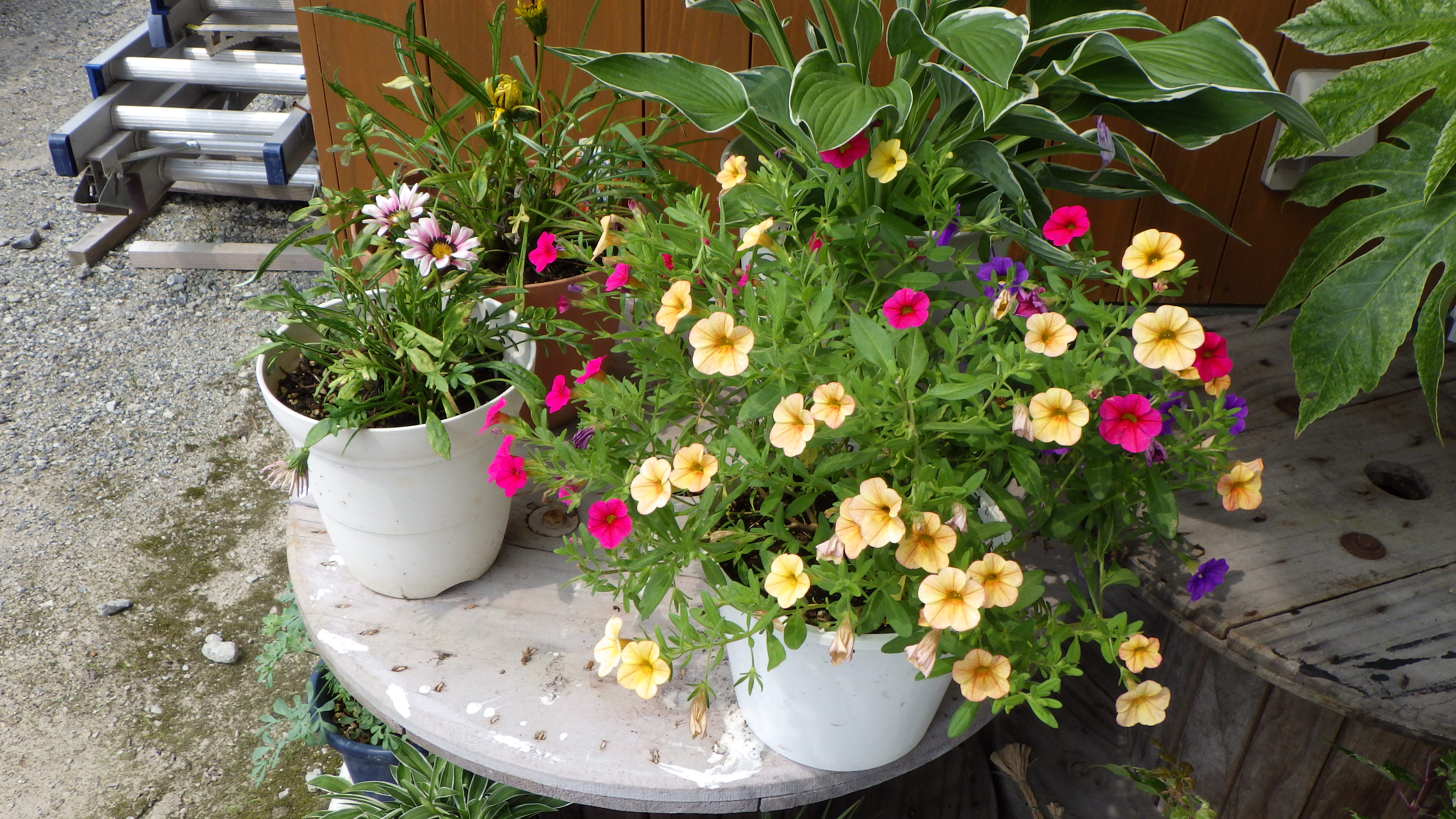 今日は事務所の外の植木鉢に咲いている花たちです!
